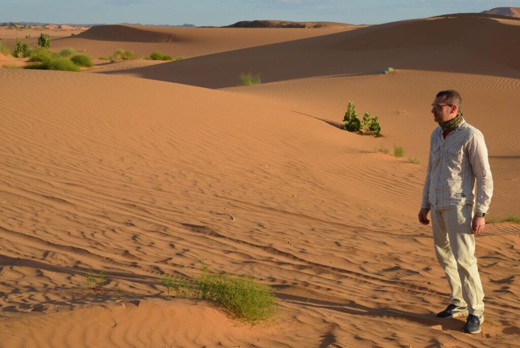 Tai bendra dviejų fotografų – rašytojo Eriko Laicono Urvinio ir menininko Pauliaus Kriuko – paroda. Skirtingi tikslai 2026 m. kovą suvedė mus pradžioje į Kauną, o vėliau į Maroką. Tuomet ten buvo dar žvarboka: reikėjo liemenių ir striukių. Saulė dienomis jau šiek tiek šildė, bet vakarai ir naktys buvo vėsios ir lietingos.